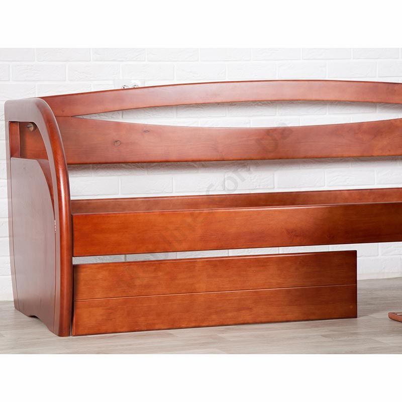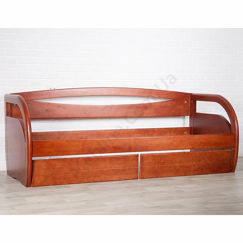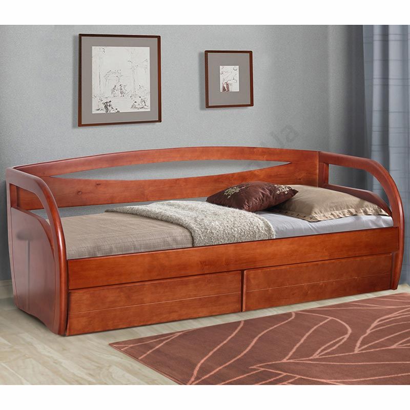 Односпальне дерев’яне ліжко зі спинкою та ящиками.