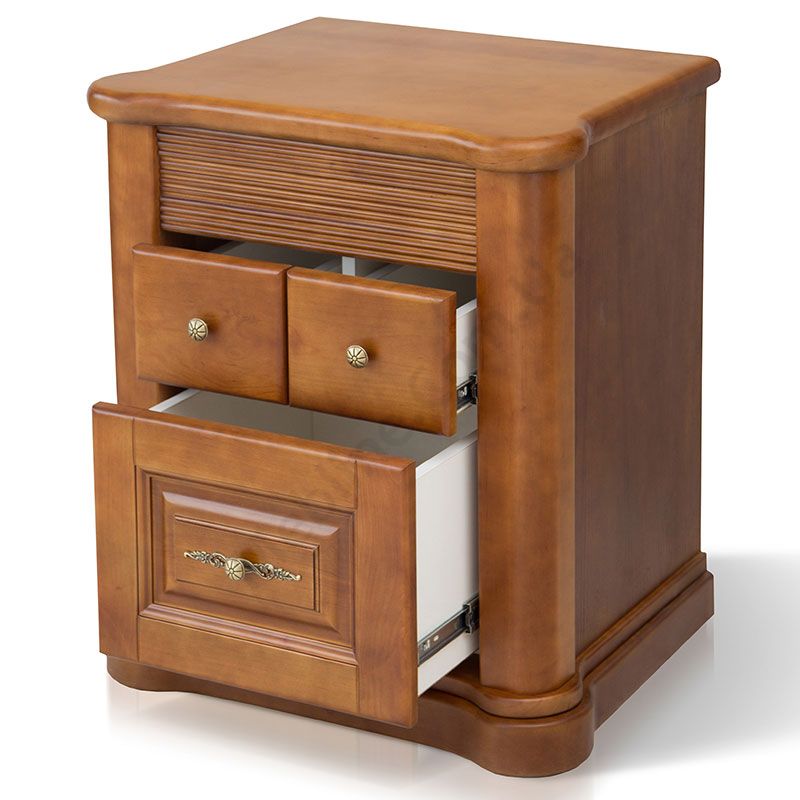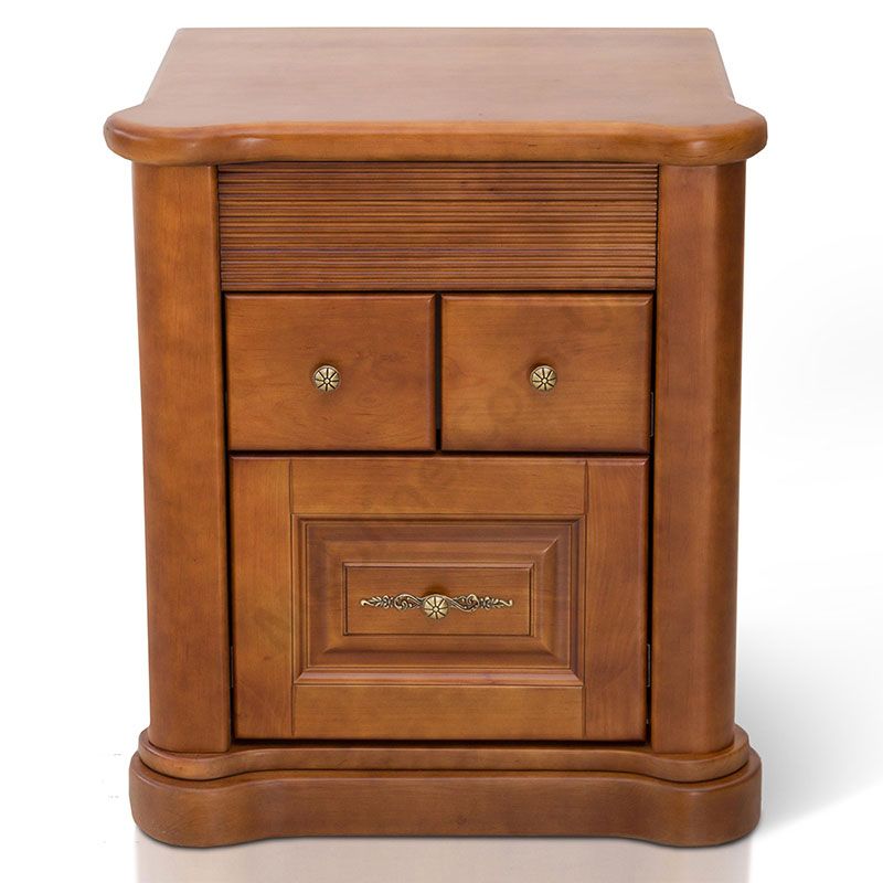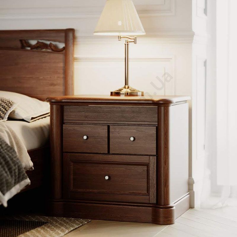Дерев’яна приліжкова тумба з висувними шухлядами.