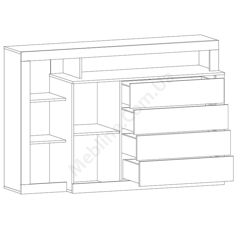 Комод з висувними шухлядами, дверцятами та полицями.