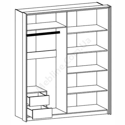 Дводверна шафа-купе з висувними шухлядами та полицями.