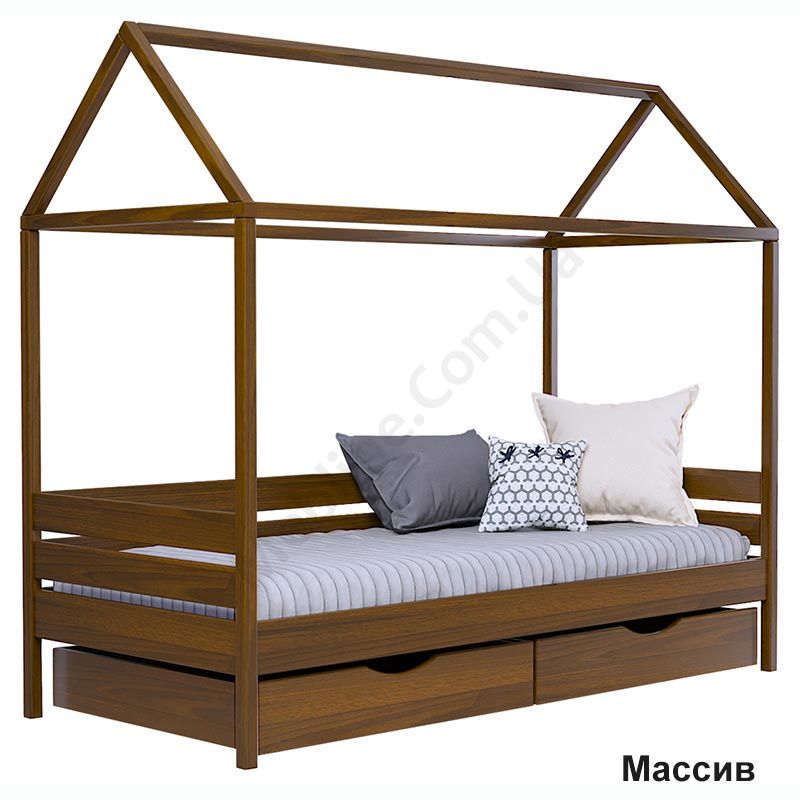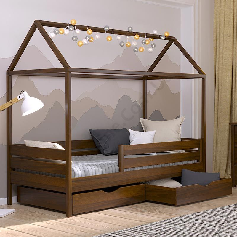 Дитяче дерев’яне ліжко у вигляді будиночка.