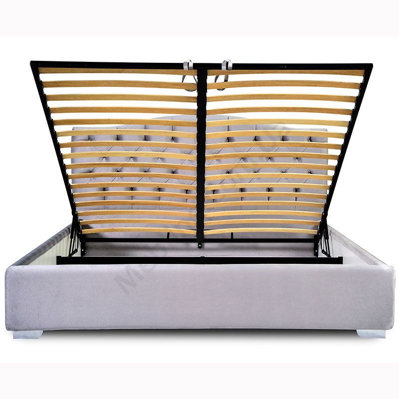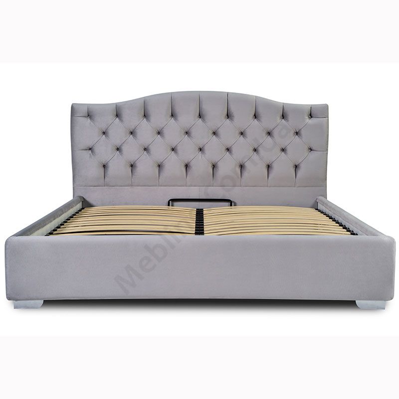 Двоспальне підйомне ліжко з м’яким узголів’ям з каретною стяжкою.