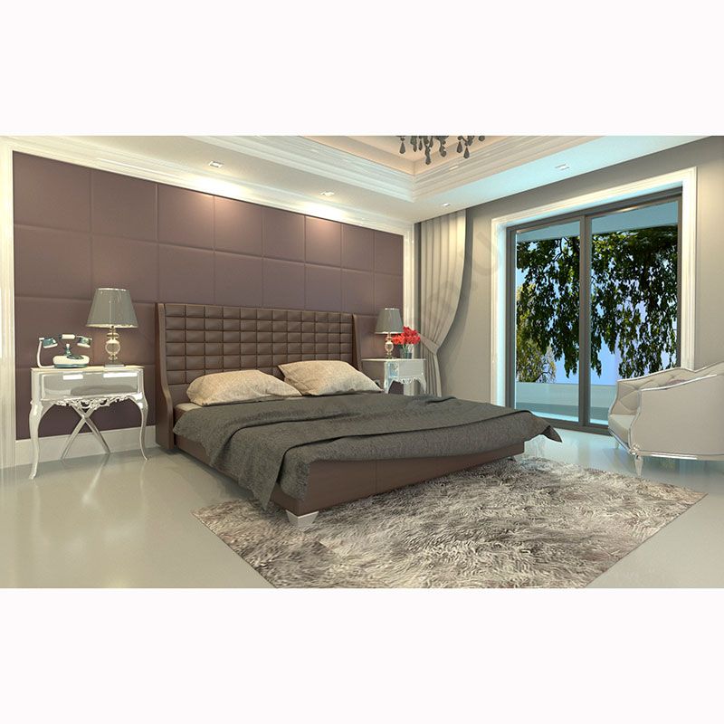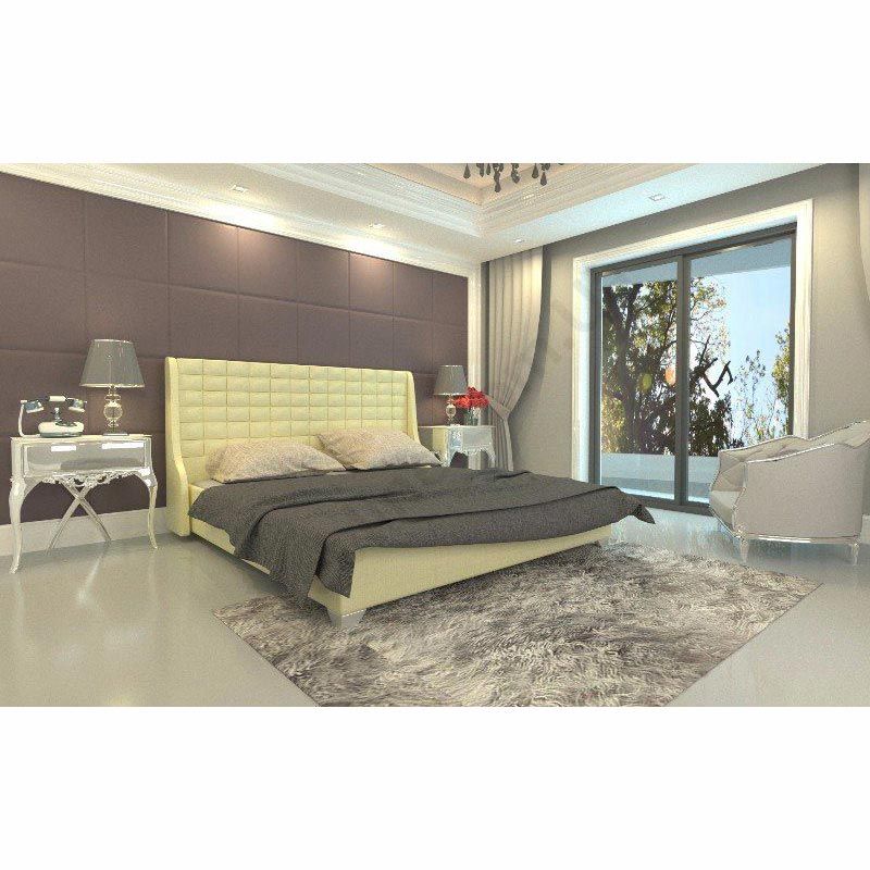 Двоспальне ліжко з високим м’яким узголів’ям.