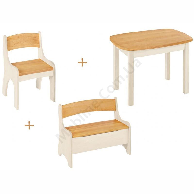 Дитячий набір з натурального дерева зі столиком та стільчиками.