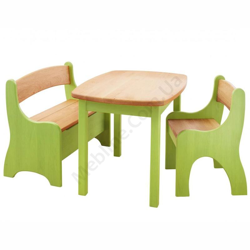 Дитячий набір з натурального дерева зі столиком та стільчиками.