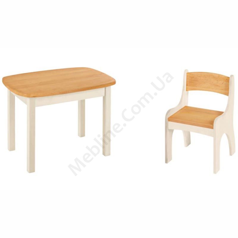 Дитячий набір з натурального дерева зі столиком та стільчиком.