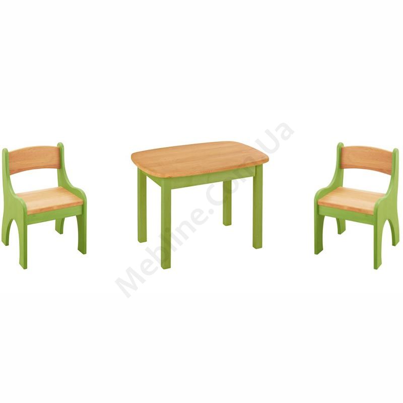 Дитячий набір з натурального дерева зі столиком та стільчиками.