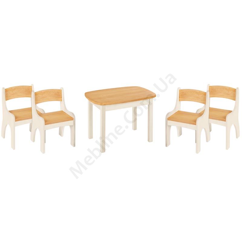 Дитячий набір з натурального дерева зі столиком та стільчиками.