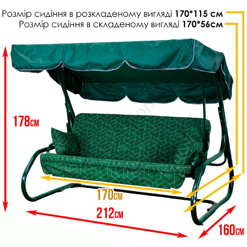 - Розмір сидіння у зібраному вигляді — 1700х550 мм.