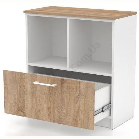 Матеріал — ламінована ДСП Swiss Krono, завтовшки 16 мм.Екологічна безпека класу Е-1.ДСП має високу щільність.Фурнітура — DC та Linken.Протиударна кромка ПВХ, завтовшки 0, 5 та 2 мм.Ручки GTV (Польща).Дві відкриті полиці.Знизу висувна шухляда.Шухляда на роликових напрямних.Можливе встановлення телескопічних напрямних.Тумба може служити як продовження столу.