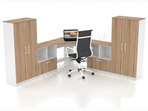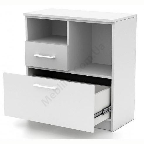 Матеріал — ламінована ДСП Swiss Krono, завтовшки 16 мм.Екологічна безпека класу Е-1.ДСП має високу щільність.Фурнітура — DC та Linken.Протиударна кромка ПВХ, завтовшки 0, 5 та 2 мм.Ручки GTV (Польща).Дві відкриті полиці.Дві висувні шухляди.Шухляди на роликових напрямних.Можливе встановлення телескопічних напрямних.Тумба може служити як продовження столу.