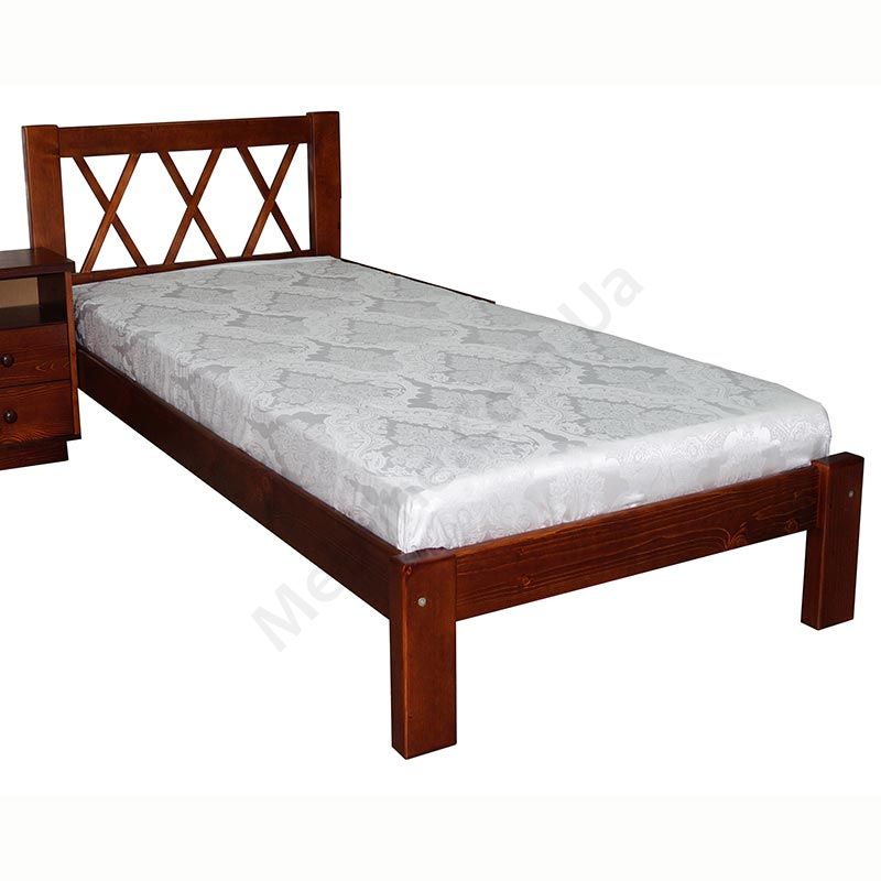 Односпальне ліжко на ніжках з натурального дерева з прямим узголів’ям.