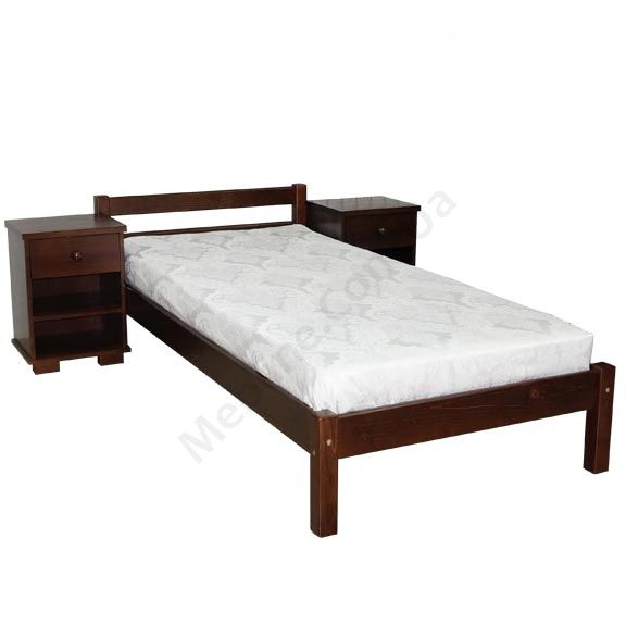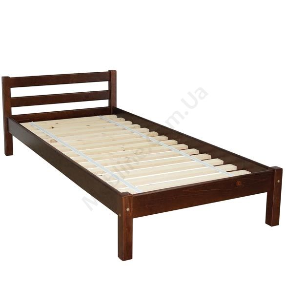 Односпальне ліжко на ніжках з натурального дерева з прямим узголів’ям.