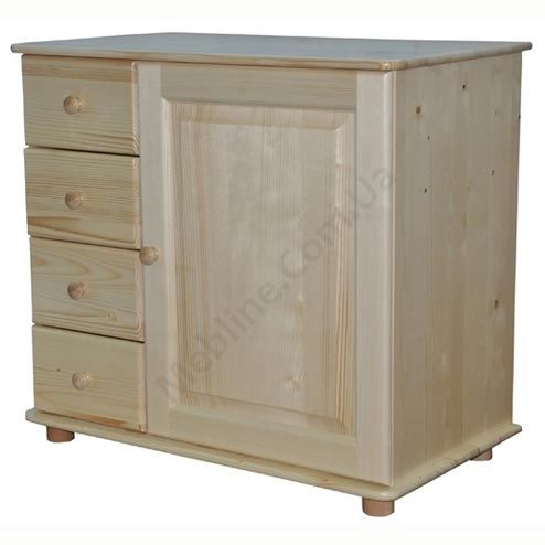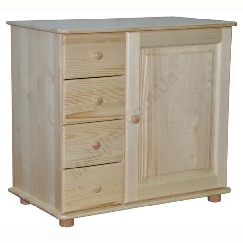 Комод з натурального дерева з чотирма висувними шухлядами та дверцятами.