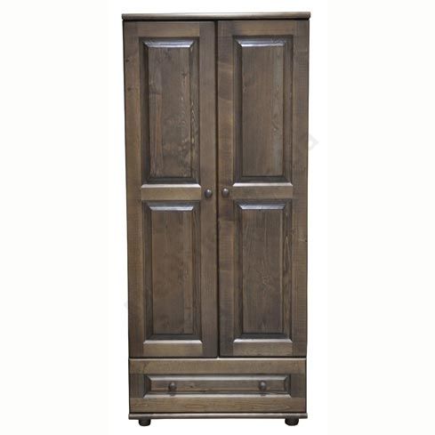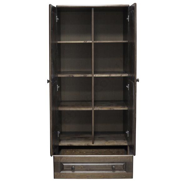 Двохдверна дерев’яна шафа з шухлядою та поличками.