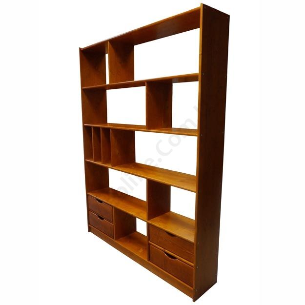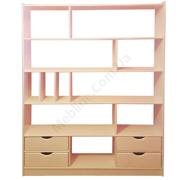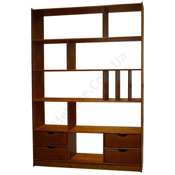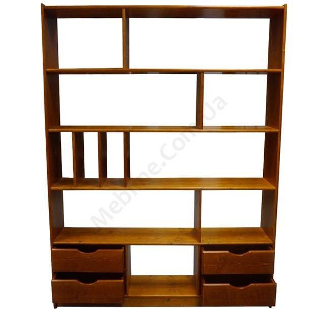 Етажерка з натурального дерева з відкритими поличками та шухлядами.