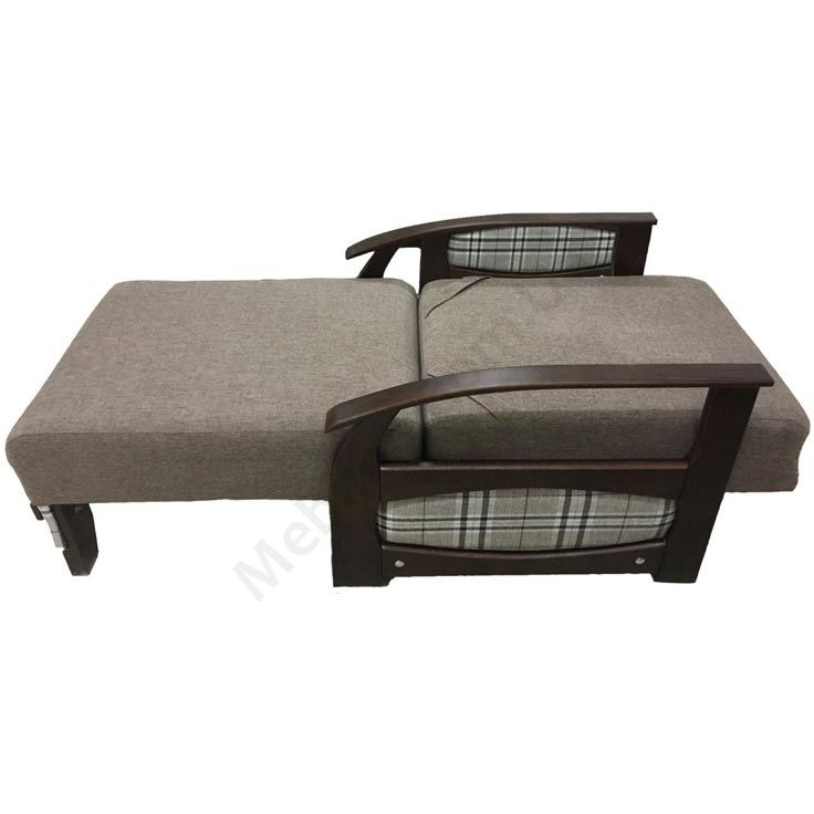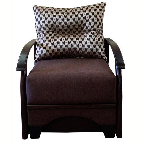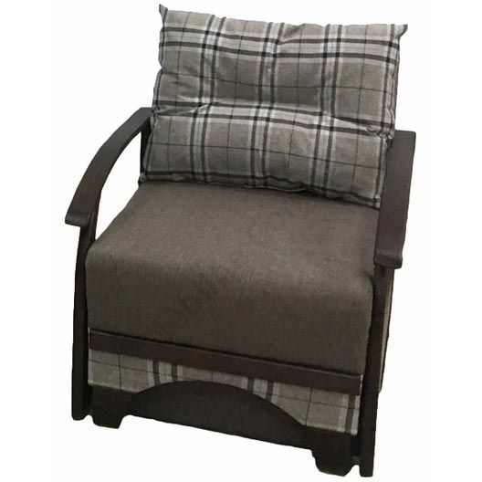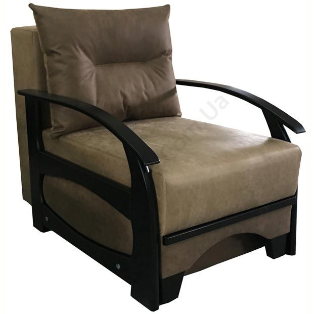 М’яке раскладане крісло з дерев’яними підлокітниками.