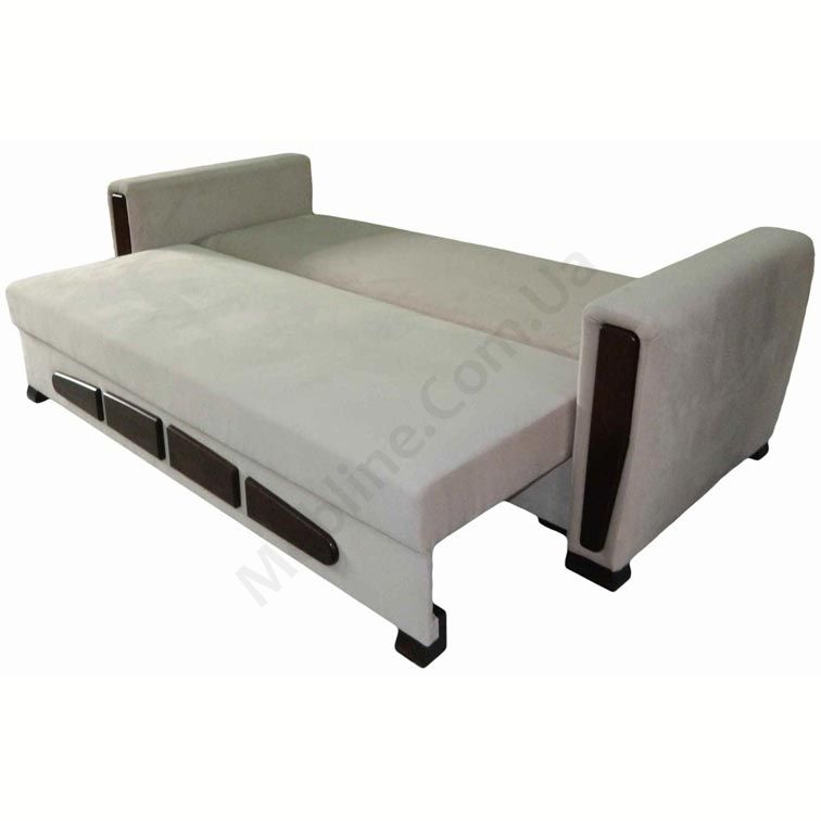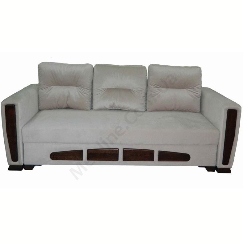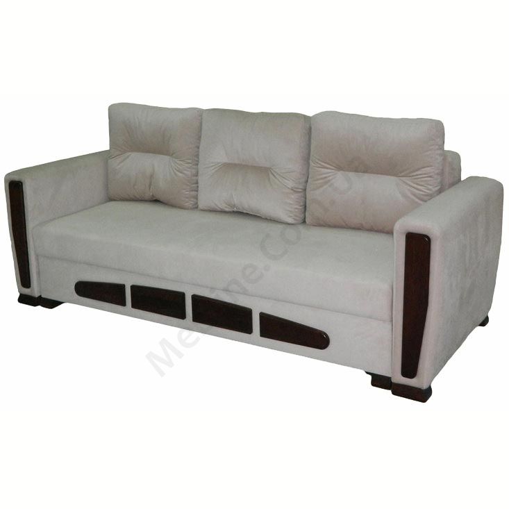М’який розкладаний диван з широкими підлокітниками та декором.