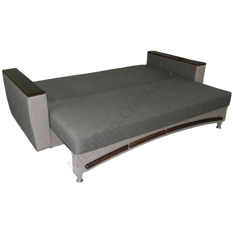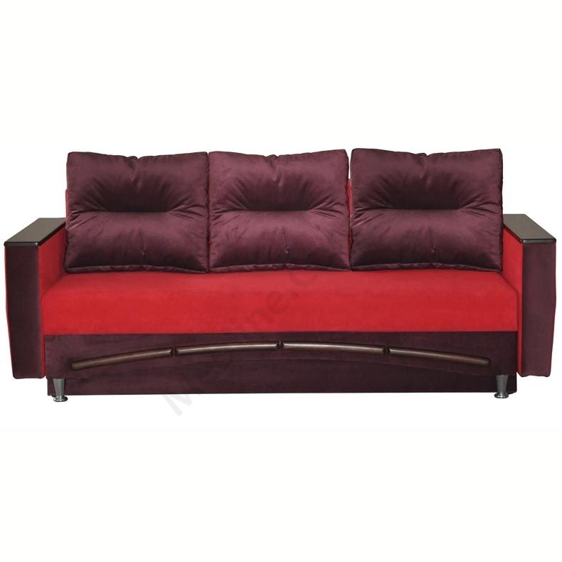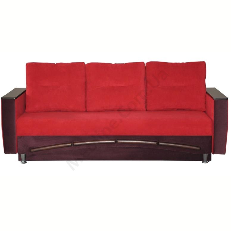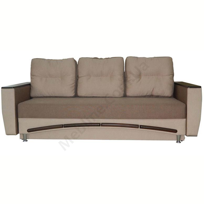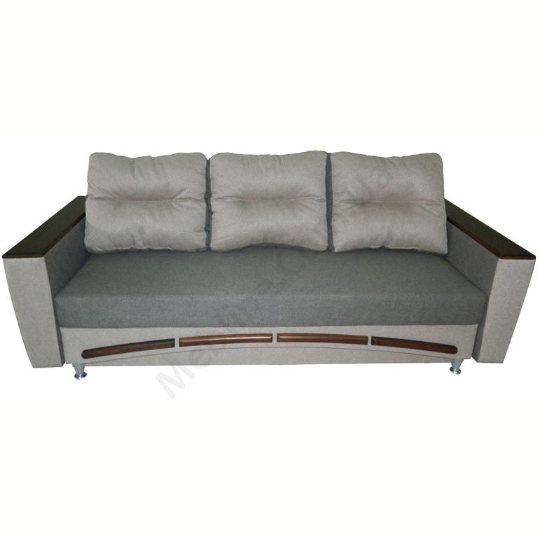 М’який розкладаний диван з широкими підлокітниками та декором.