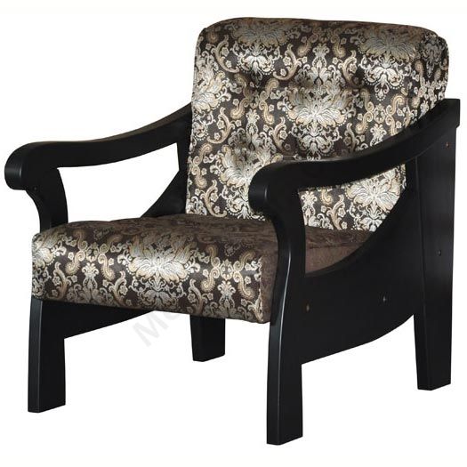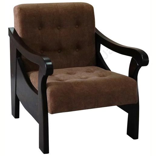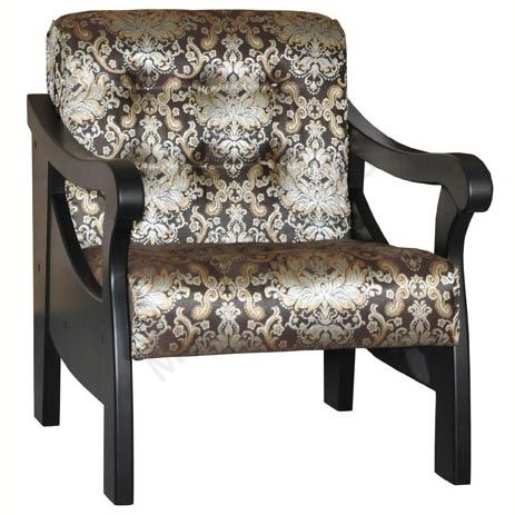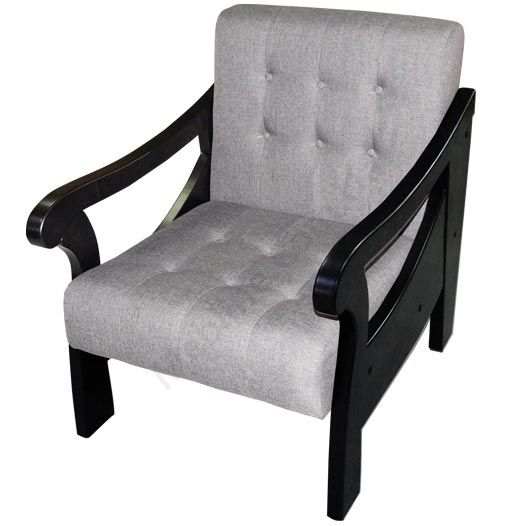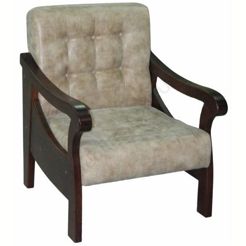 М’яке нерозкладане крісло з дерев’яними підлокітниками.