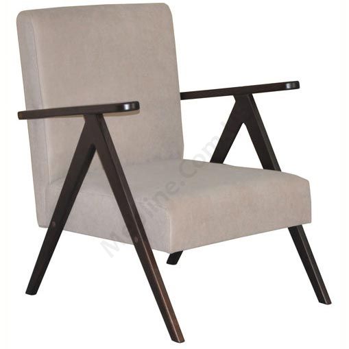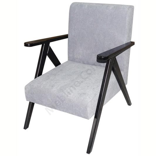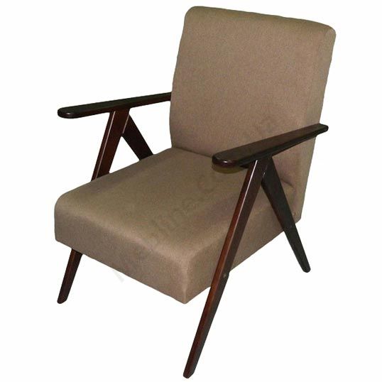 М’яке нерозкладане крісло з дерев’яними підлокітниками.
