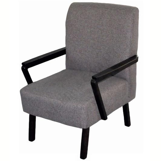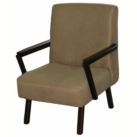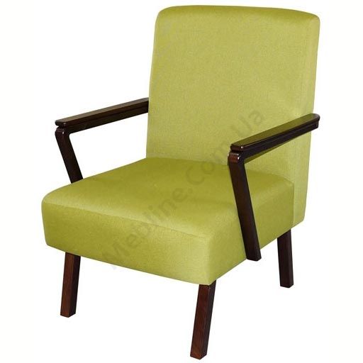 М’яке нерозкладане крісло з дерев’яними підлокітниками.