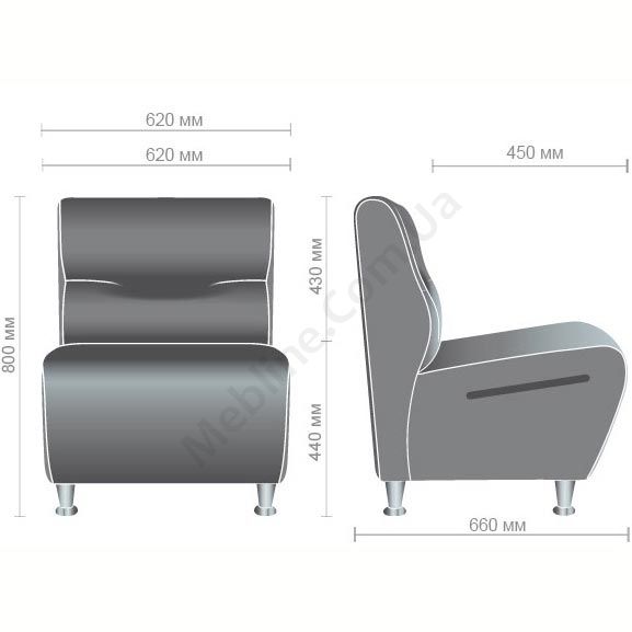 М’яке крісло на ніжках без підлокітників.