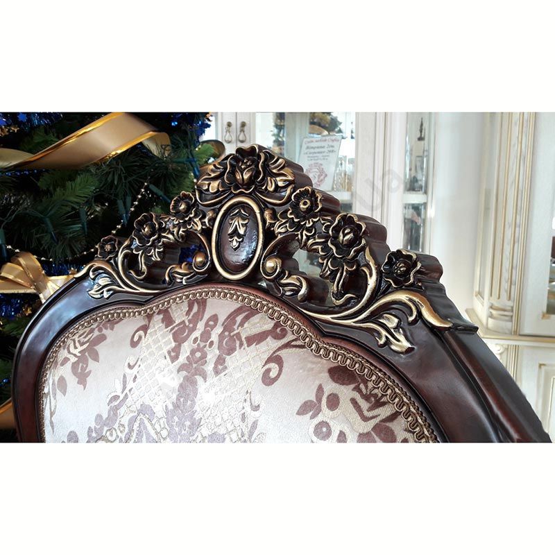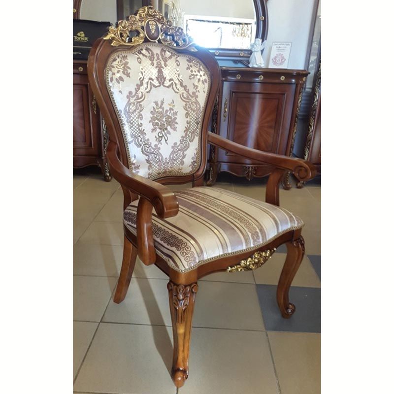 Стілець з підлокітниками в класичному стилі з м’якою оббивкою.