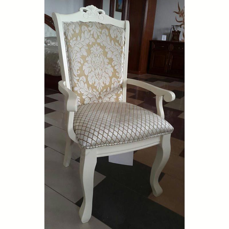 Стілець з підлокітниками в класичному стилі з м’якою оббивкою.