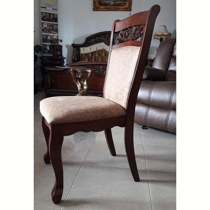 Дерев’яний стілець в класичному стилі з м’якою оббивкою.