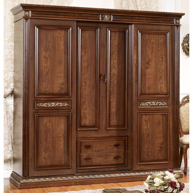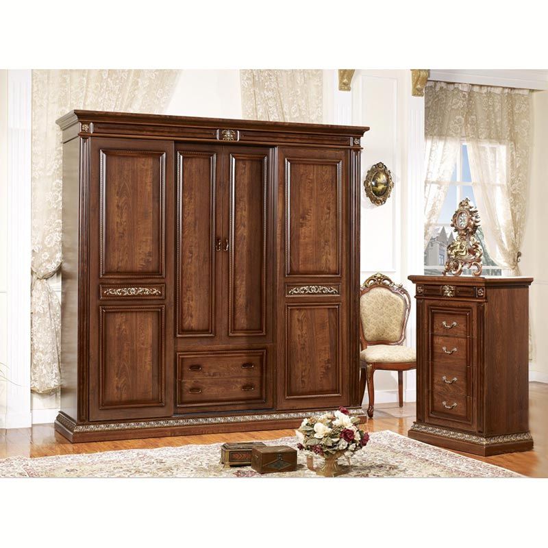 Чотиридверна шафа в класичному стилі з шухлядами.