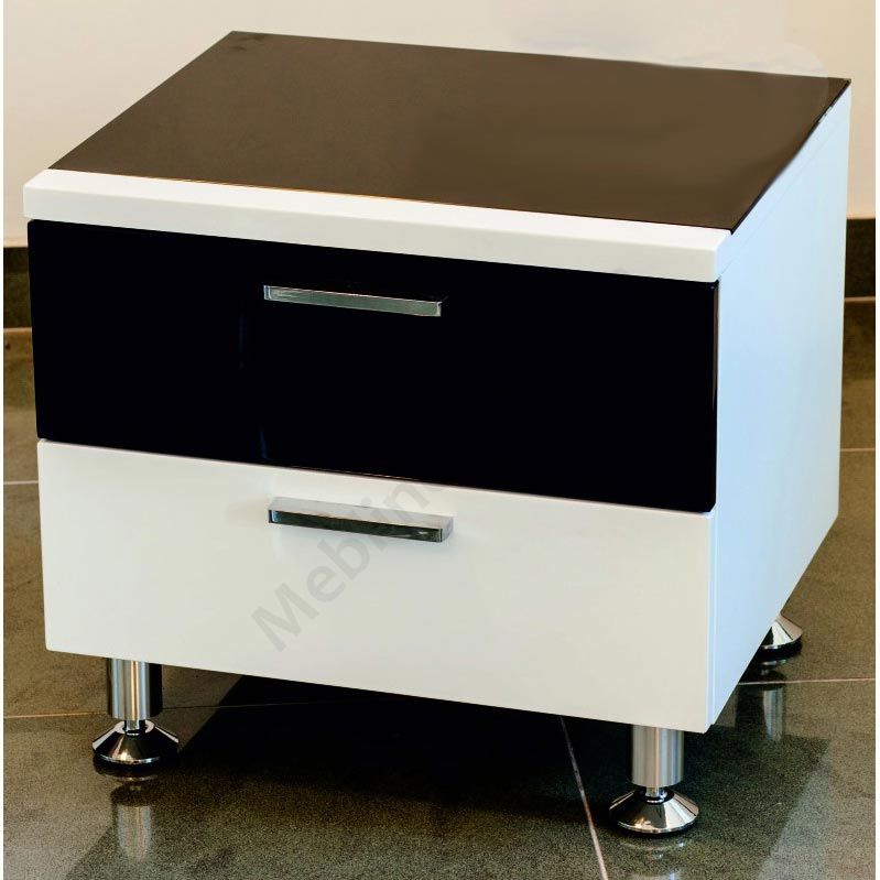 Кришка тумби виконана з чорного скла.