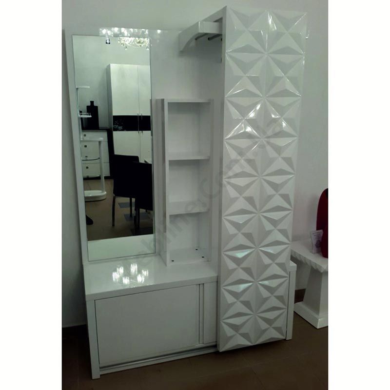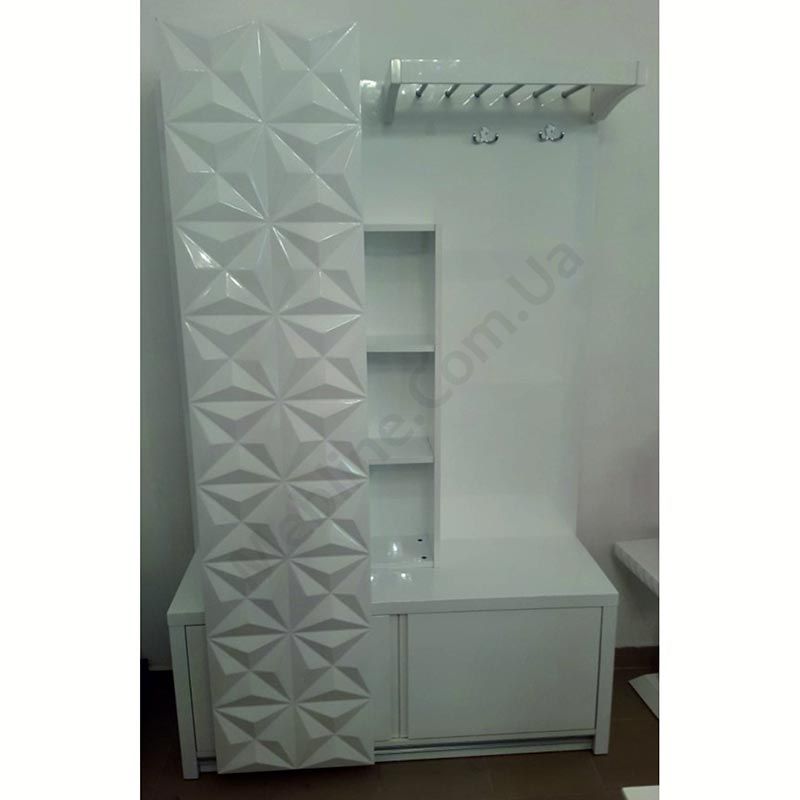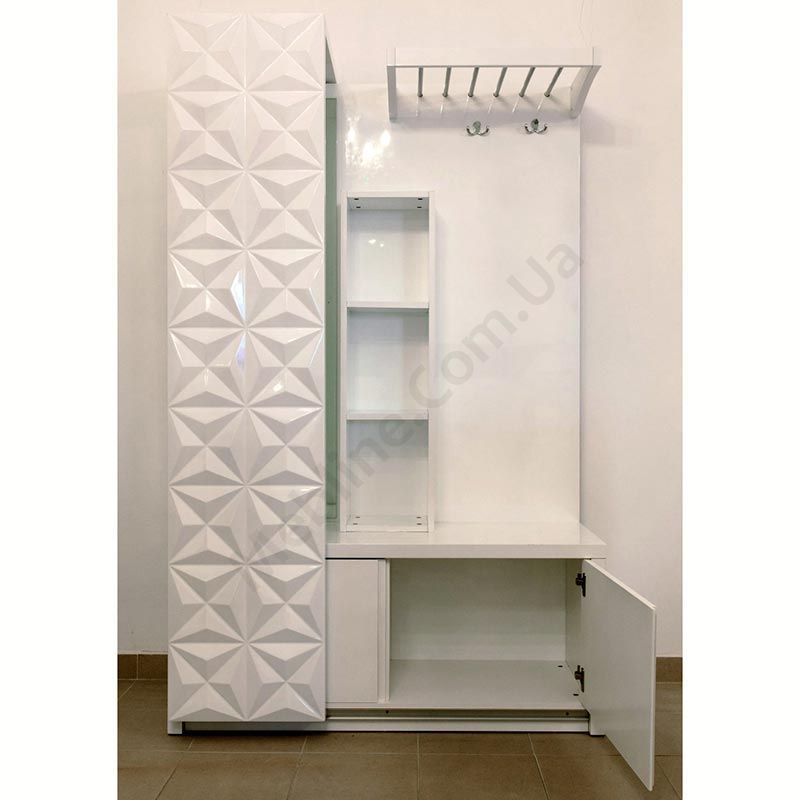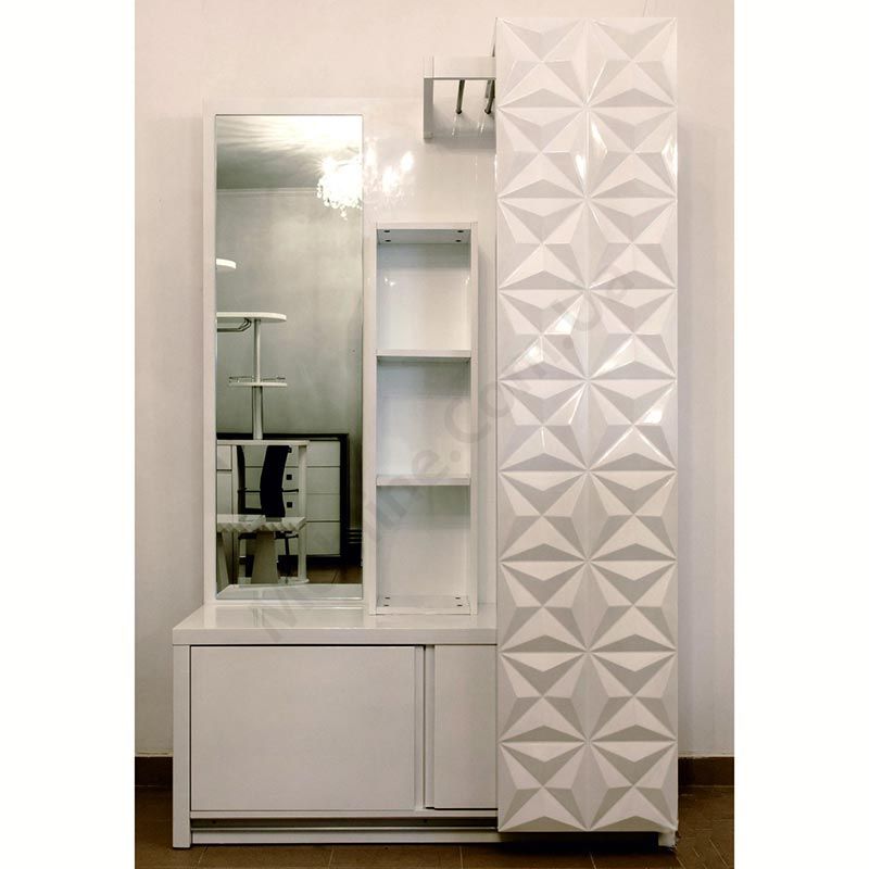 - Дверцята з візерунком від'їжджають, закриваючи або дзеркало або вішак.