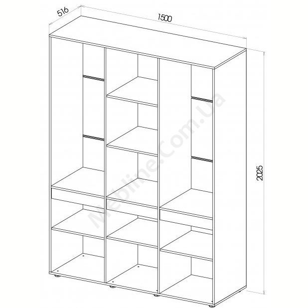 - За лівими та правими дверцятами штанга для одягу та дві полиці.