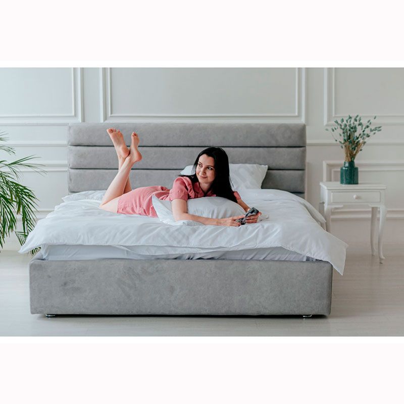 Двоспальне ліжко з м’якою оббивкою, підйомним механізмом та матрацом.