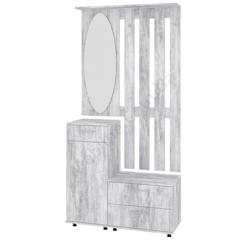 Передпокій з дзеркалом, тумбою і висувними шухлядами.