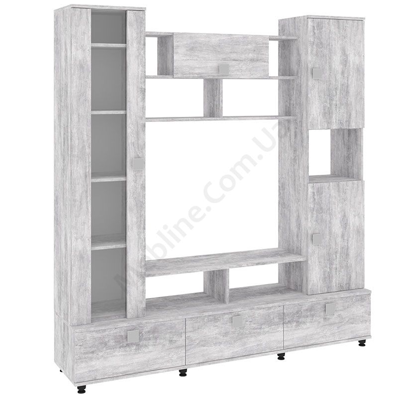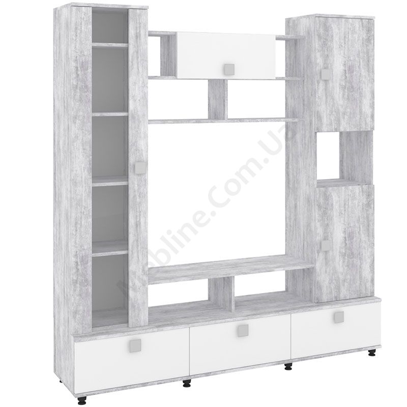 Стінка у вітальню з тумбою під телевізор, вітриною і полицями.