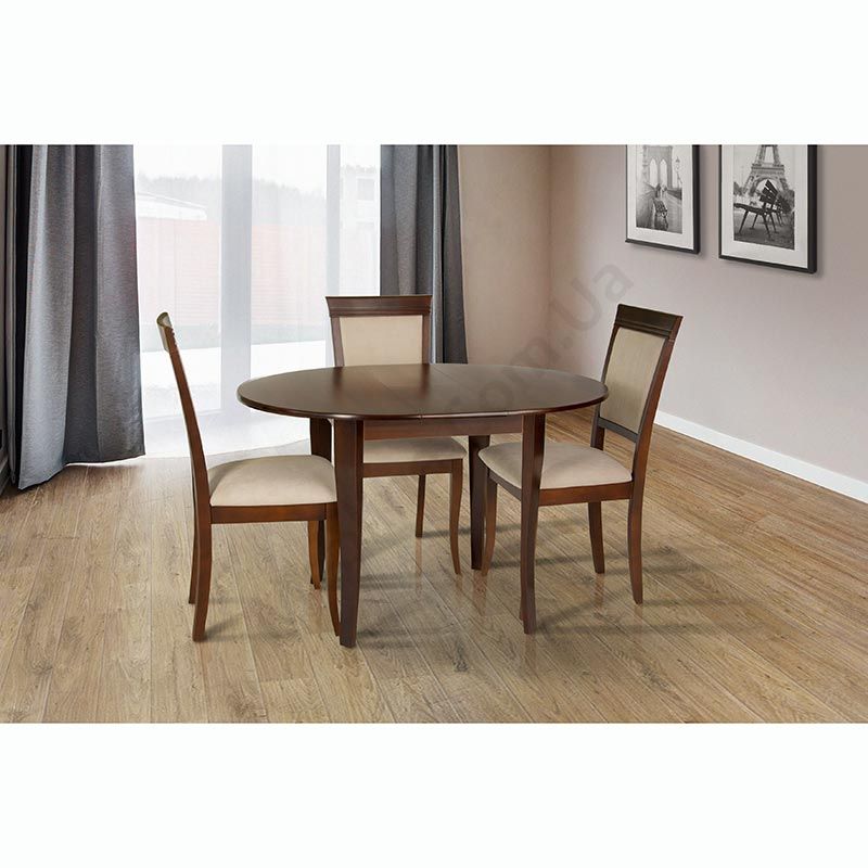 Обідній розкладний круглий стіл на ніжках із натурального клена.