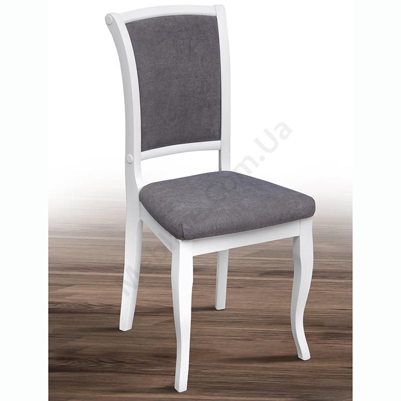 Білий дерев’яний обідній стілець з м’якою оббивкою без підлокітників (Alyaska 05 Shark).