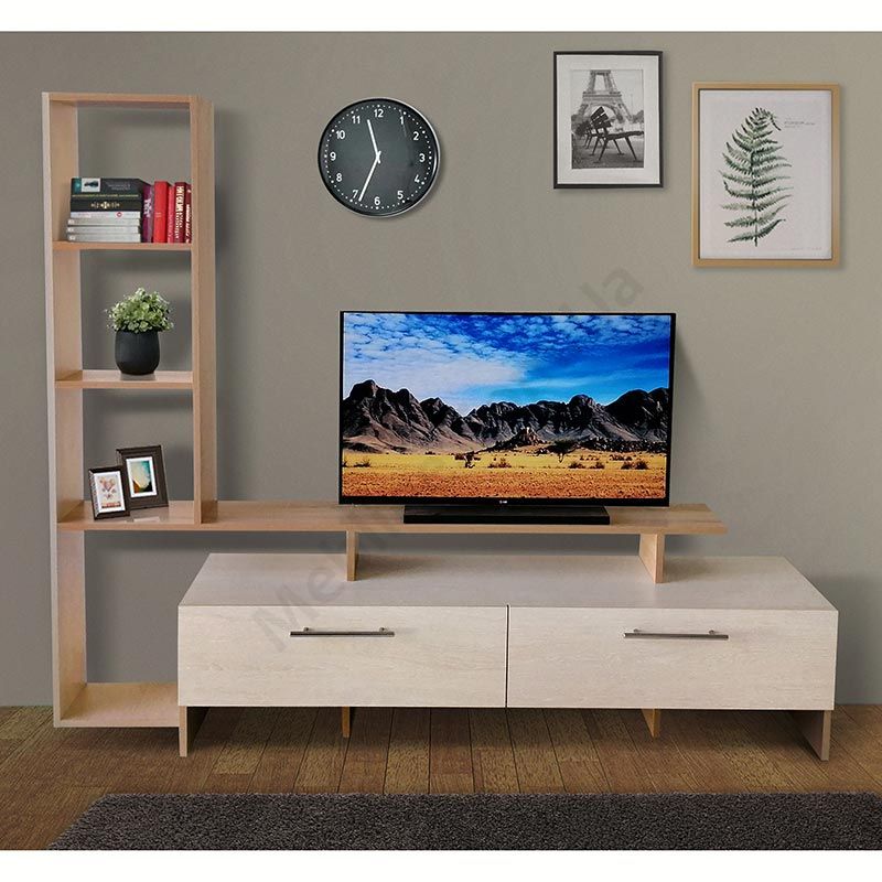 Тумба під телевізор зі стелажем та шухлядами.