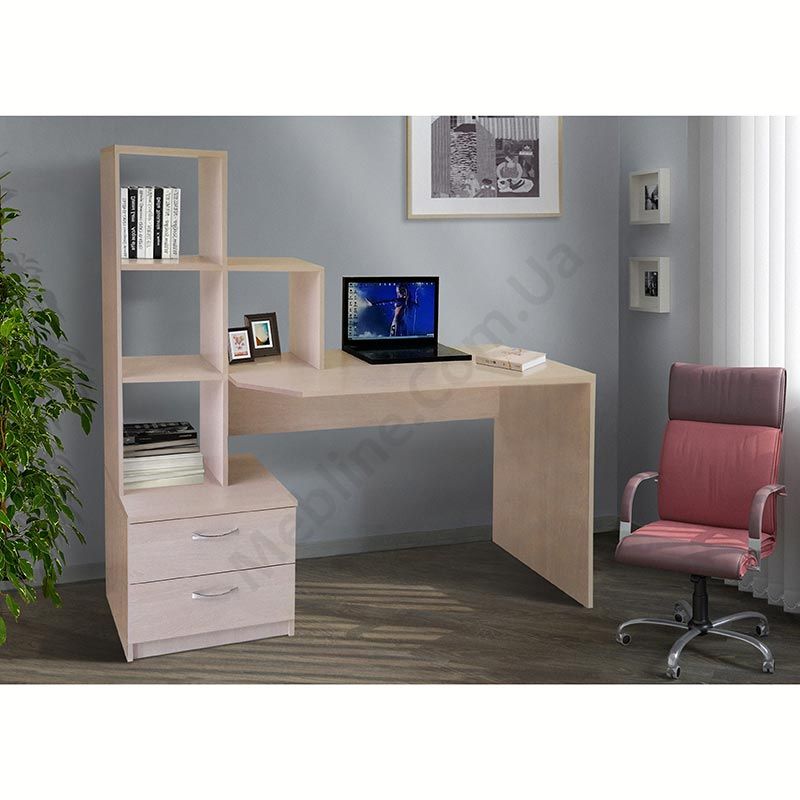 Комп’ютерний стіл зі стелажем та шухлядами.