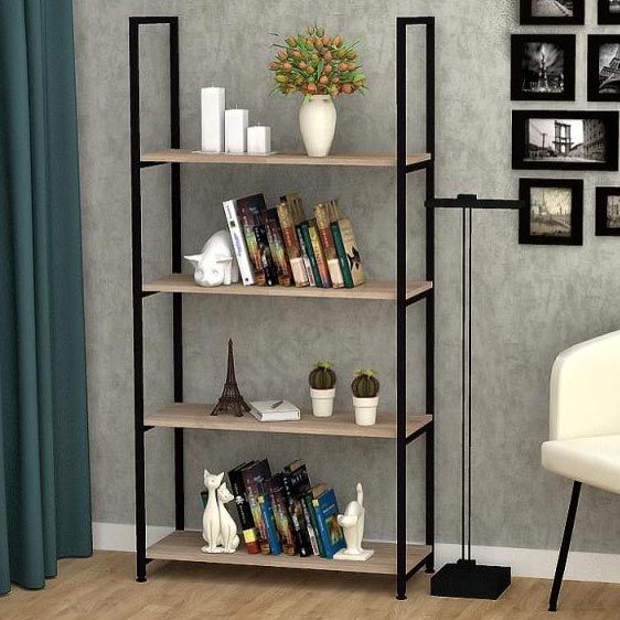 Етажерка з чотирма відкритими полицями у стилі лофт.
