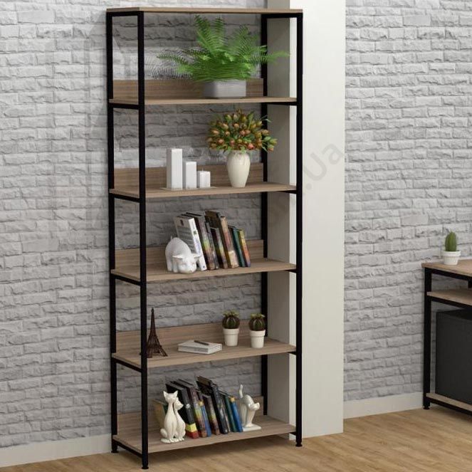 Етажерка з шістьма відкритими полицями у стилі лофт.