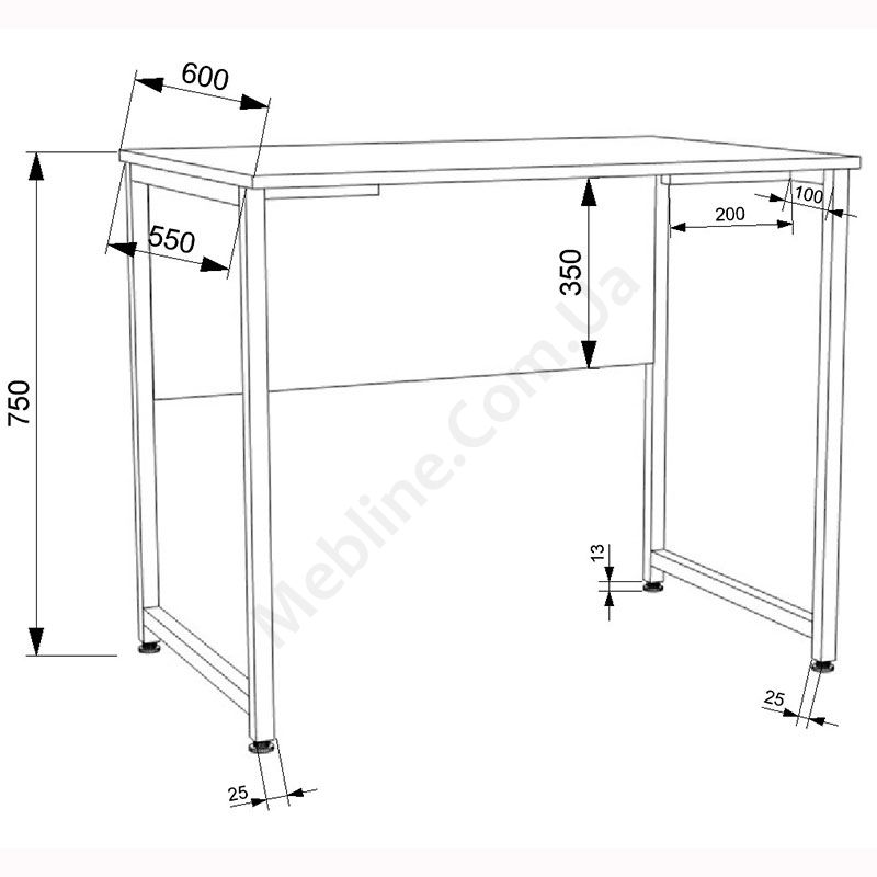 Стільниця виконана з ламінованої ДСП Swiss Krono, завтовшки 16 мм.ДСП має високу щільність, екологічна безпека класу Е1.Протиударна кромка ПВХ, завтовшки 1 мм.Корпус — металева труба 25х25 мм, товщина стінок 1, 5 мм.Можна використовувати як комп’ютерний, письмовий або стіл для ноутбука.Підійде для приміщень у стилі лофт.