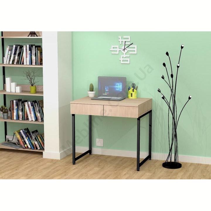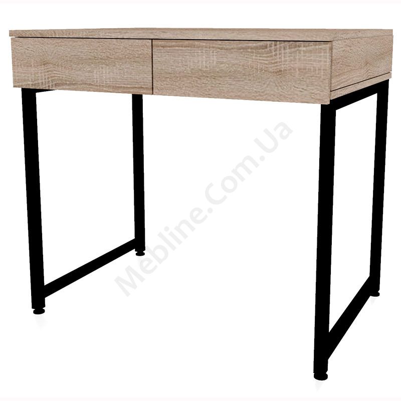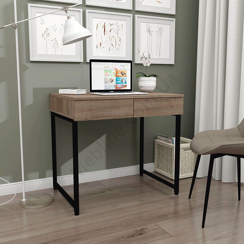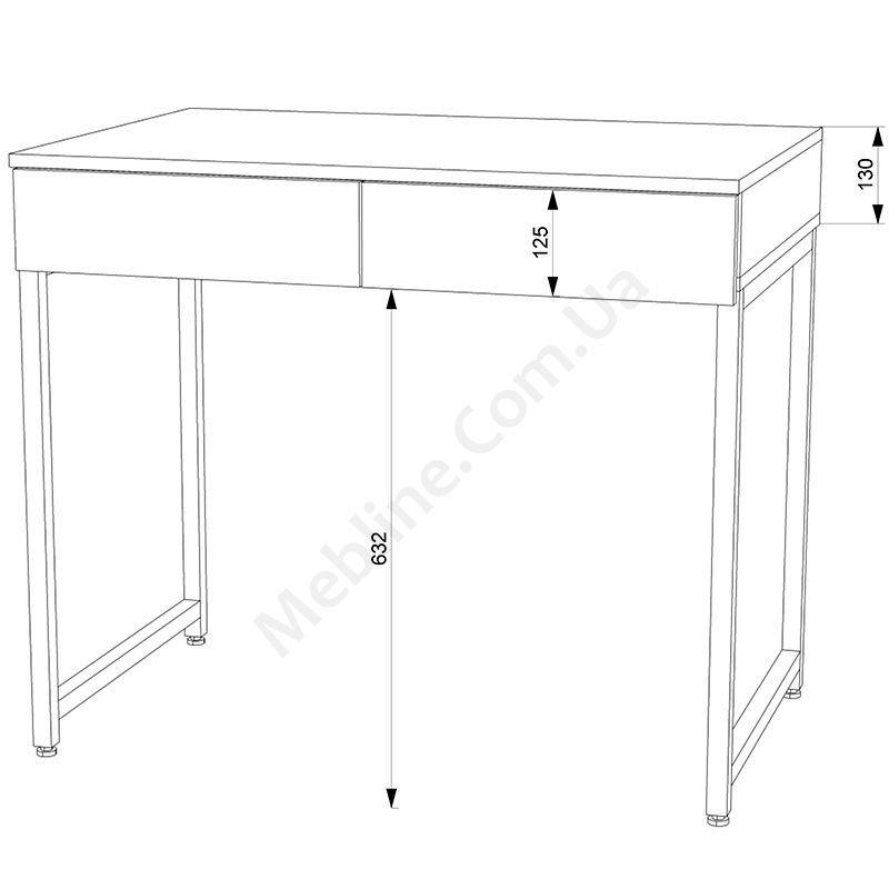 Стільниця виконана з ламінованої ДСП Swiss Krono, завтовшки 16 мм.ДСП має високу щільність, екологічна безпека класу Е1.Протиударна кромка ПВХ, завтовшки 1 мм.Корпус — металева труба 25х25 мм, товщина стінок 1, 5 мм.Під стільницею дві висувні шухляди.Шухляди на телескопічних напрямних.Можна використовувати як комп’ютерний, письмовий або стіл для ноутбука.Підійде для приміщень у стилі лофт.