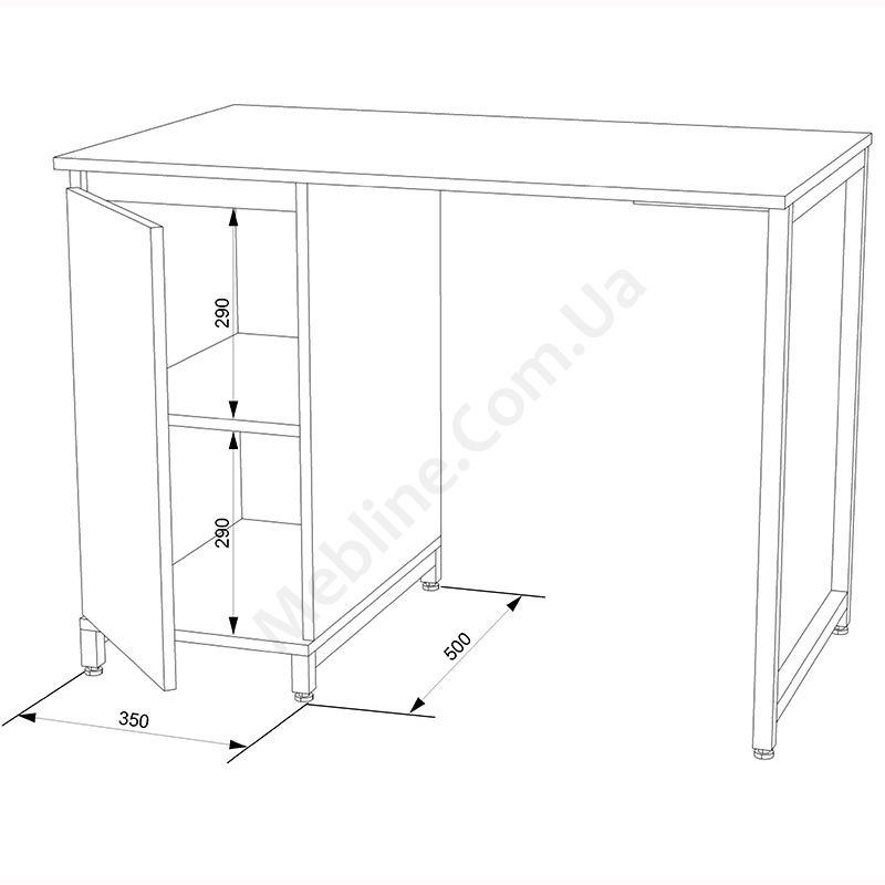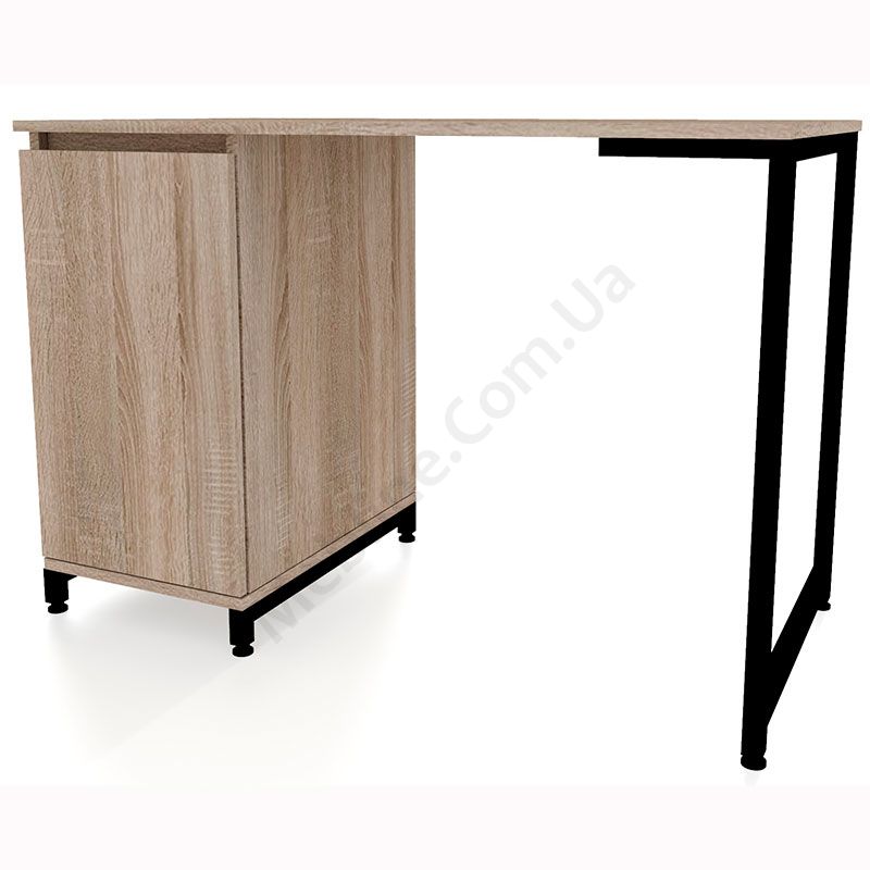 Стільниця виконана з ламінованої ДСП Swiss Krono, завтовшки 16 мм.ДСП має високу щільність, екологічна безпека класу Е1.Протиударна кромка ПВХ, завтовшки 0, 5 та 1 мм.Корпус — металева труба 25х25 мм, товщина стінок 1, 5 мм.Одні розпашні дверцята.За дверцятами два відділення.Підійде для приміщень у стилі лофт.