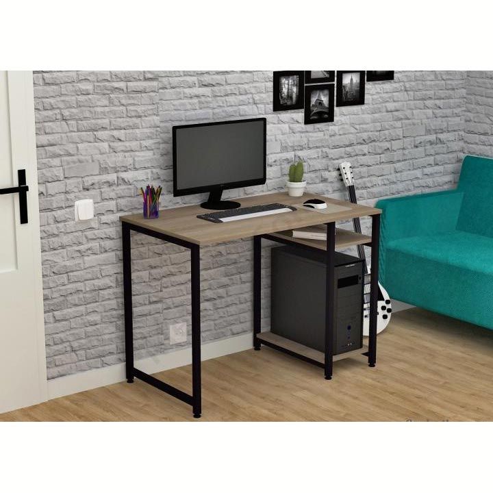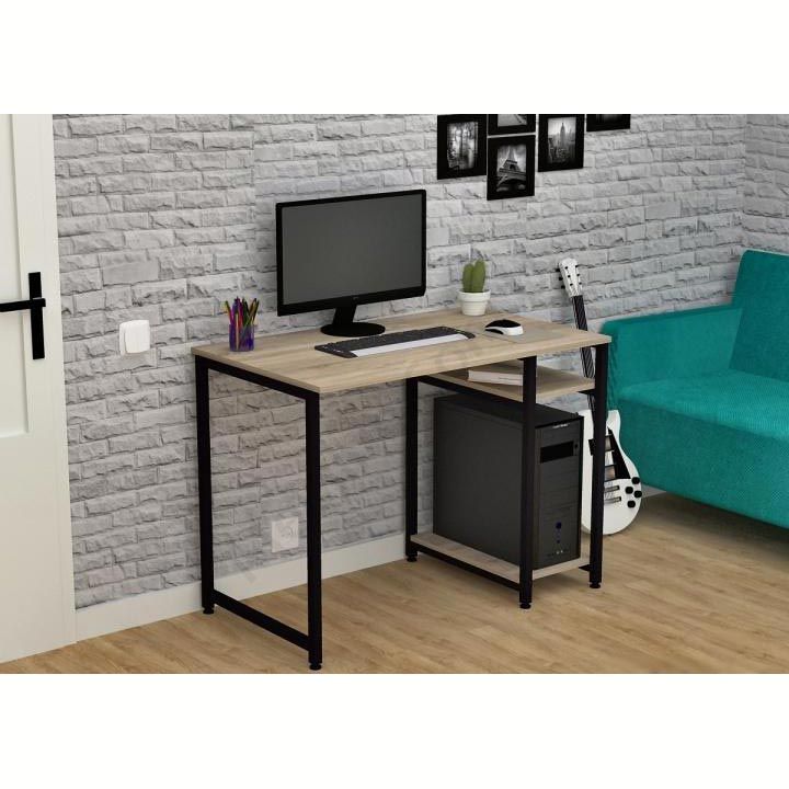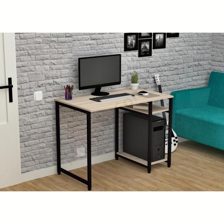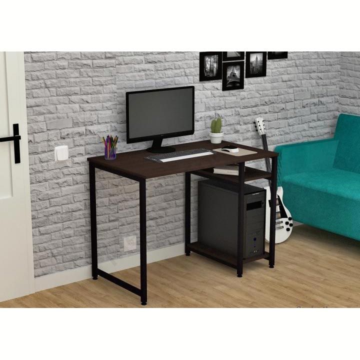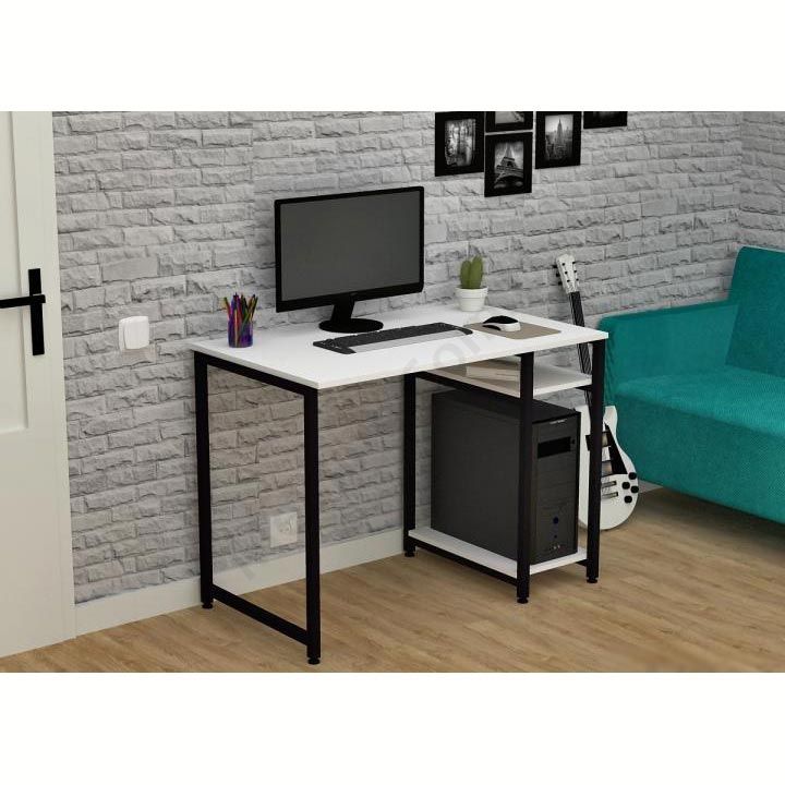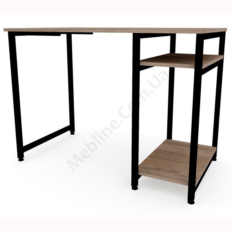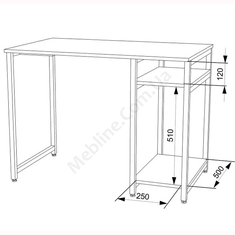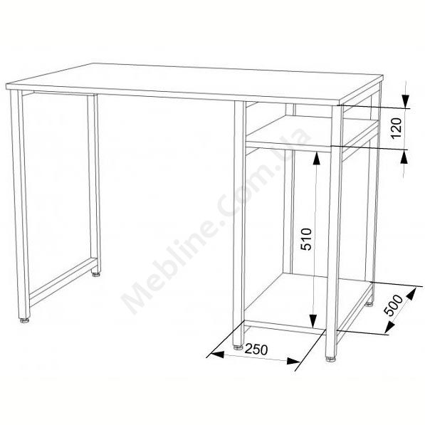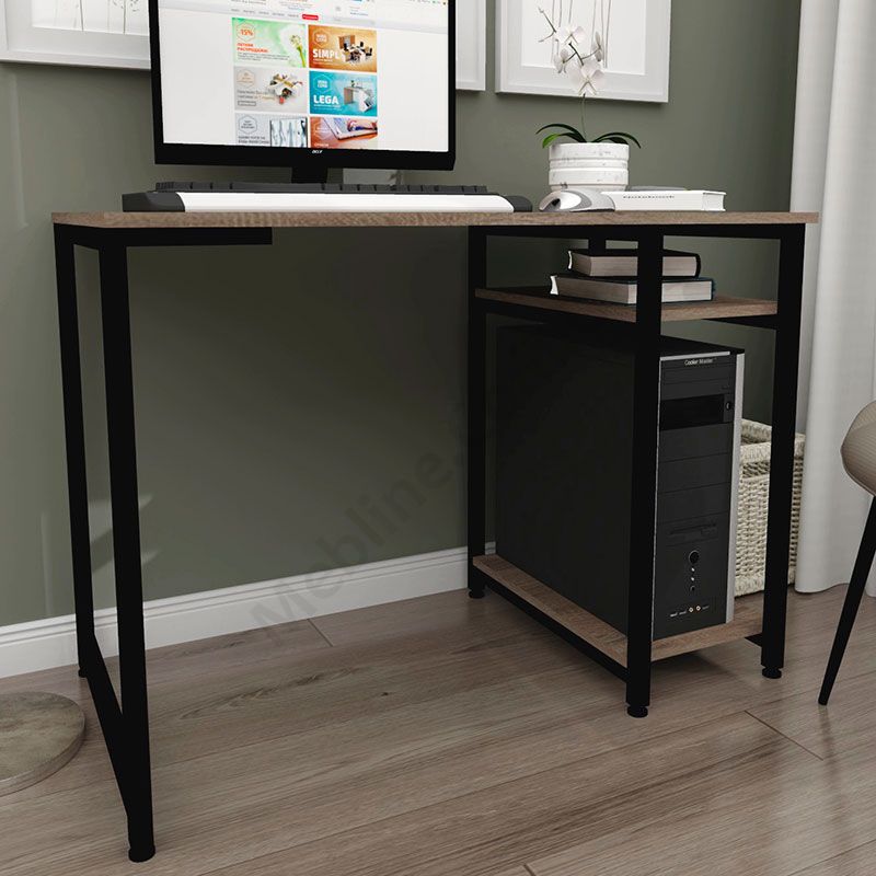 Виконаний з ламінованої ДСП Swiss Krono, завтовшки 16 мм.ДСП має високу щільність, екологічна безпека класу Е1.Протиударна кромка ПВХ, завтовшки 1 мм.Корпус — металева труба 25х25 мм, товщина стінок 1, 5 мм.Полиця під системний блок та одна відкрита невелика поличка.Підійде для приміщень у стилі лофт.