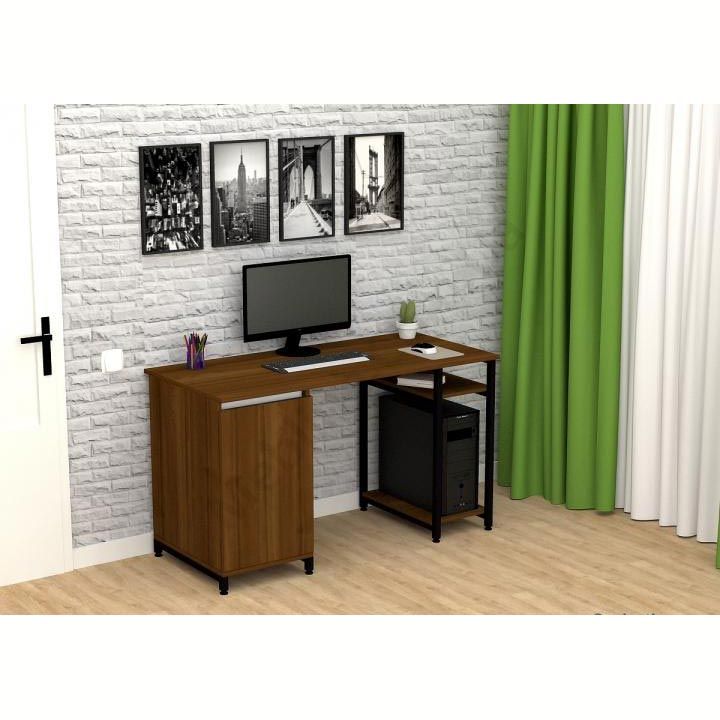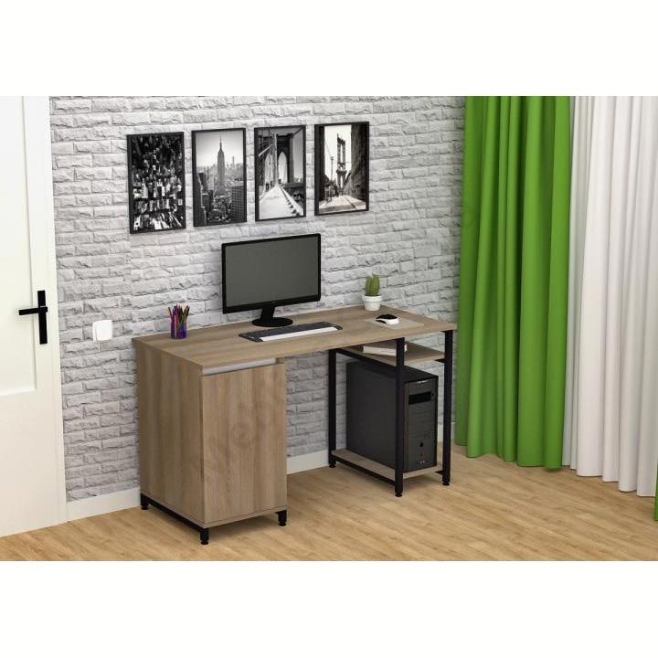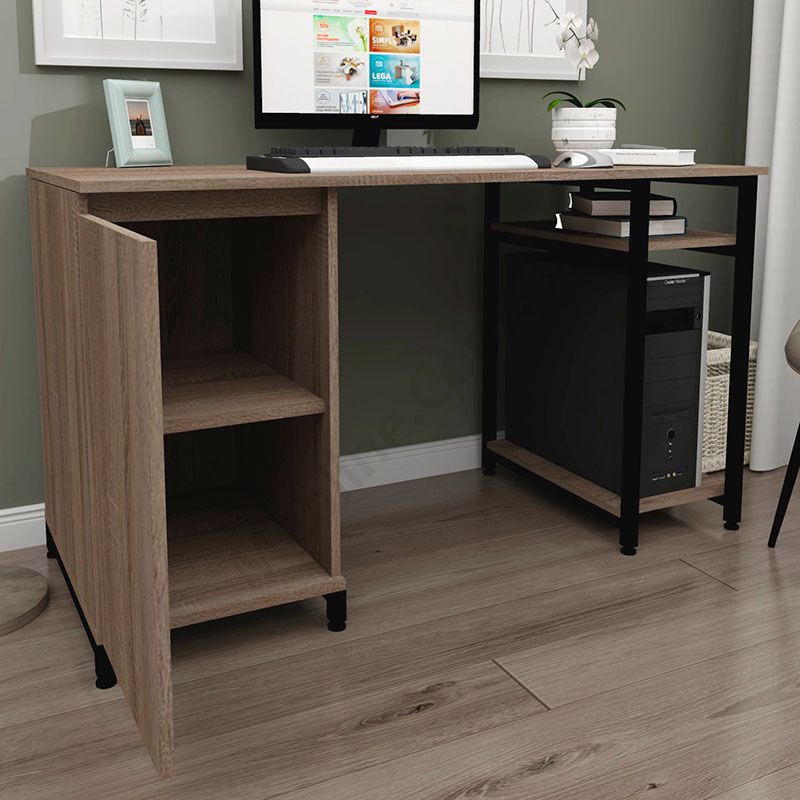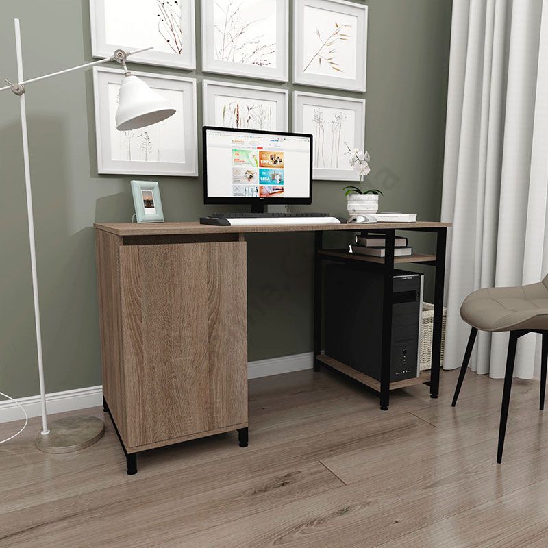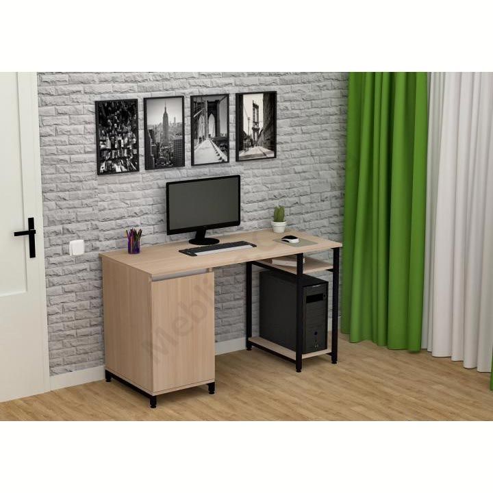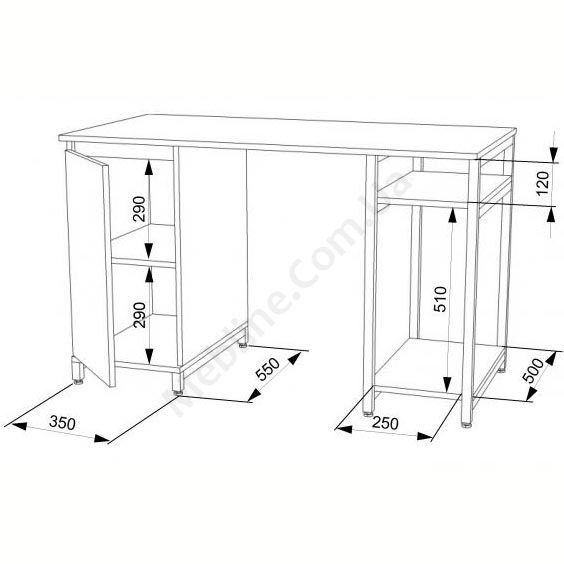 Виконаний з ламінованої ДСП Swiss Krono, завтовшки 16 мм.ДСП має високу щільність, екологічна безпека класу Е1.Протиударна кромка ПВХ, завтовшки 0, 5 та 1 мм.Корпус — металева труба 25х25 мм, товщина стінок 1, 5 мм.Полиця під системний блок та одна відкрита поличка.Одні розпашні дверцята.За дверцятами два відділення.Підійде для приміщень у стилі лофт.