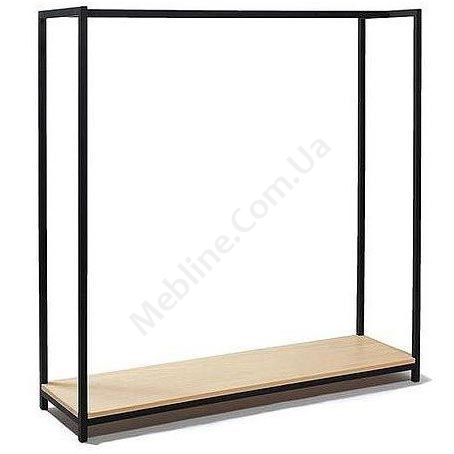 Виконано з фарбованого металу.Металева труба 25х25 мм, товщина стінок 1, 5 мм.Полиця з ламінованої ДСП, завтовшки 16 мм.Кромка — ПВХ, завтовшки 0, 5 мм.Зручна для розміщення одягу на плічках.Знизу полиця для взуття або інших речей.Підійде для приміщень у стилі лофт.