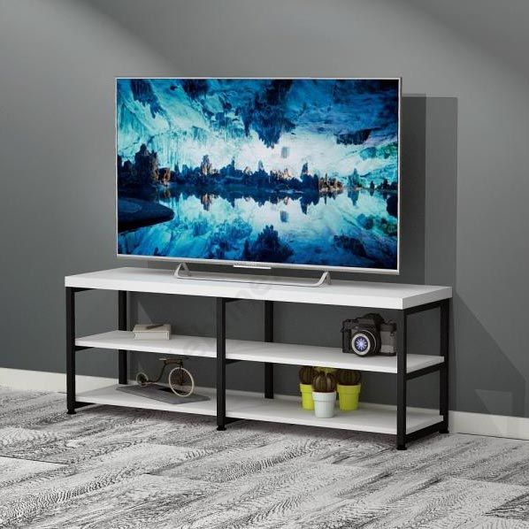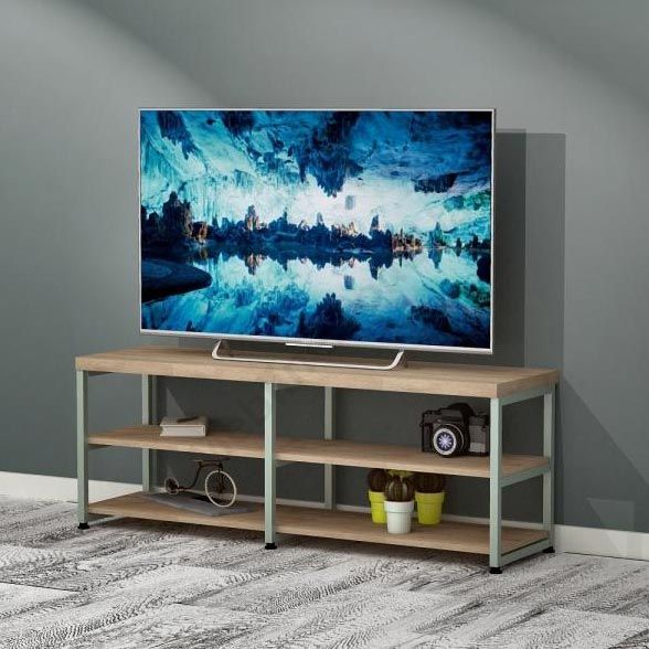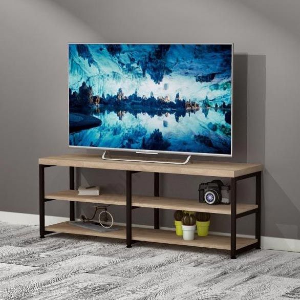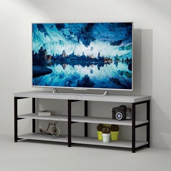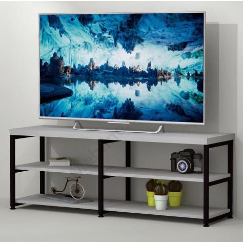 Тумба під телевізор у стилі лофт з відкритими полицями.